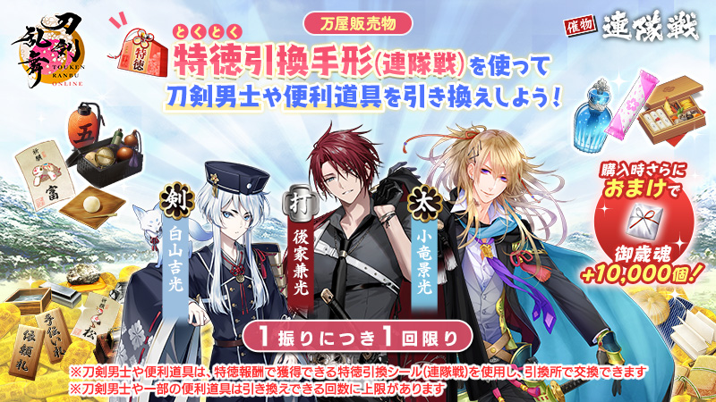「特徳引換手形(連隊戦)」は購入時におまけで御歳魂10,000個獲得できます。